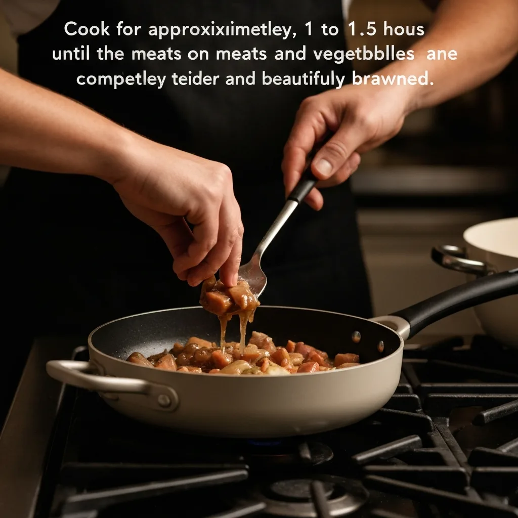 Etler ve sebzeler tamamen yumuşayıp üzerleri güzelce kızarana kadar yaklaşık 1 - 1.5 saat pişirin.