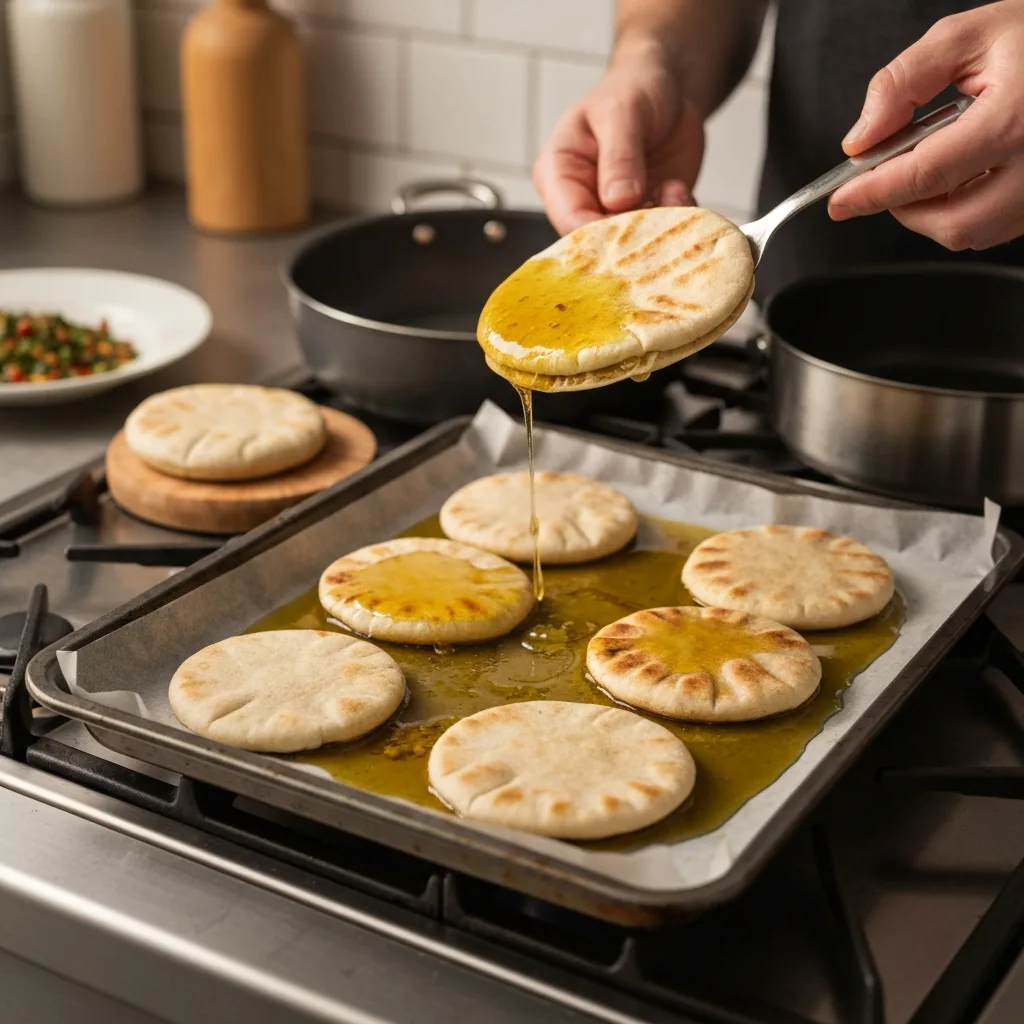 Pişirme sırasında alttaki tepsiye biriken yağlı sosa pideleri batırın.
