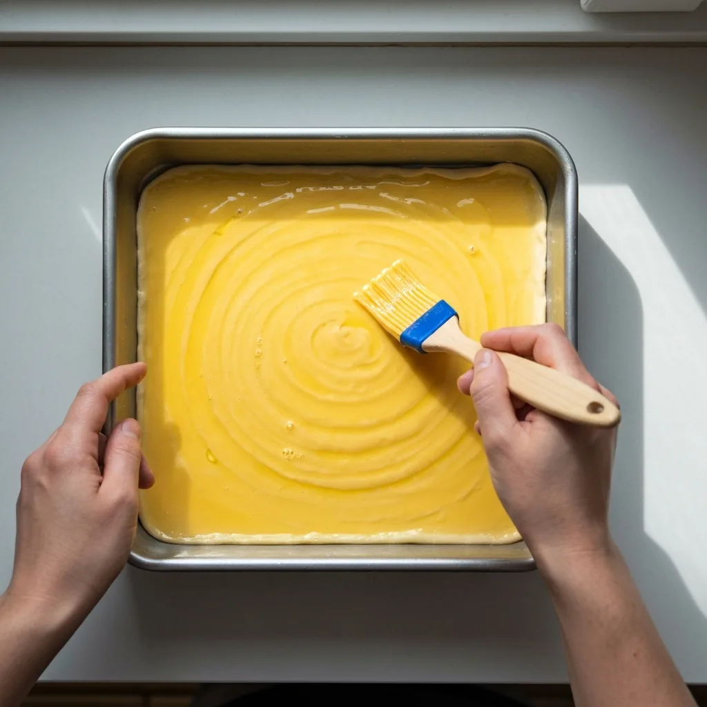 Bir kapta yumurta, süt ve sıvı yağı çırpın. Bu karışımın yarısını ilk yufkanın üzerine bir fırça yardımıyla sürün.